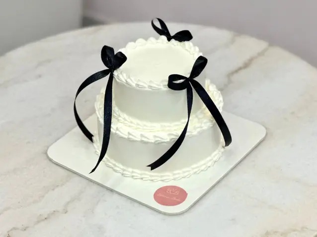Celebrate your special occasion with our Mini 2-Tier Bow Cake, beautifully designed with elegant bow decorations for a touch of charm and sophistication.