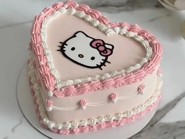 π Kitty Theme Vintage Heart Birthday Cake β Sweet Nostalgia with a Cute Twist ππ±