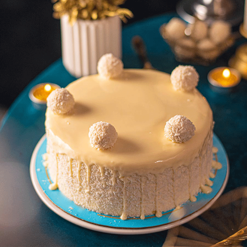 Topped with shredded coconut, white chocolate, and signature Raffaello pieces, this elegant cake is perfect for birthdays, anniversaries, and special celebrations. Every bite delivers a delightful blend of textures and flavors that will leave you craving more!